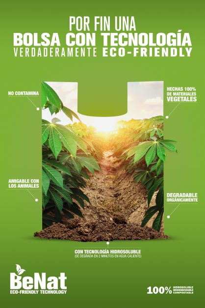 BeNat es una nueva tecnología creada para dar respuesta a los problemas de contaminación porque emplea almidones vegetales como materia prima para su obtención. Además, es amigable con el medio ambiente ya que para su proceso de producción no se require del uso del agua.