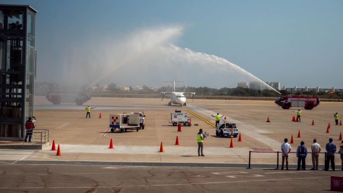 El viaje inaugural contó con la presencia de autoridades estatales, municipales y medios de comunicación, quienes arribaron al Aeropuerto Internacional de Acapulco y fueron recibidos con el tradicional baño de avión, del primer vuelo de la nueva ruta.