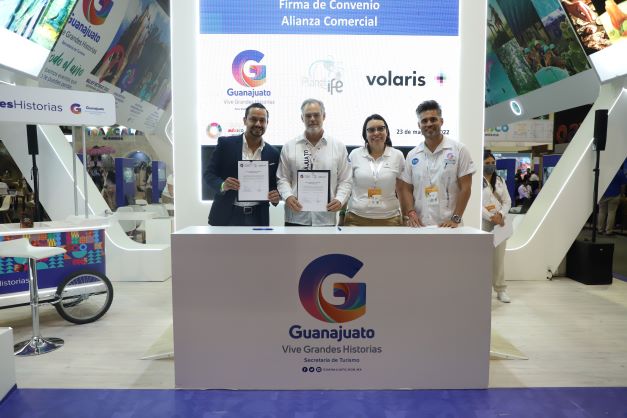 El stand de Guanajuato “Vive Grandes Historias” fue el escenario para estas importantes colaboraciones lideradas por Juan José Álvarez Brunel, secretario de Turismo de Guanajuato y representantes de Despegar-Bestday, Capital Bus CDMX, CONEXSTUR, Aeroméxico, Expedia, Mexitours, Planet IFE+Volaris, VivaAerobus, Price Travel (México y Colombia).