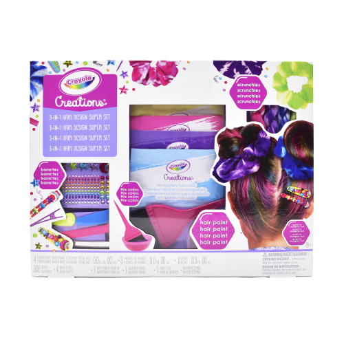 Super set diseño de cabello: Con este increíble set podrás hacer grandes creaciones a tu cabello, incluye 4 tonos de tinte diferentes, azul, morado, rosa y amarillo, al ser base agua, este no se maltratará, viene con su propio recipiente y brocha para aplicarlo; para continuar armando tu look, puedes elegir entre la pedrería muy colorida y donitas de cabello por si eres del team cabello recogido. Disponible en tiendas departamentales, en línea, Amazon y Mercado Libre.