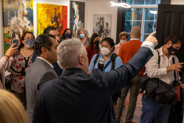 Tras destacarse que PedroTrueba inauguró su más reciente exposición “Evolución en Transición” en dicha galería, la información puntualiza que esta muestra es un testimonio histórico, un recorrido sugerente, híbrido y sincrético a través de un diálogo de armonía y costumbres entre naciones vinculadas por la historia, la cultura, la estética y el arte como lo son México y España. Una visión que Trueba ha logrado plasmar a partir de la realidad con fuerza y transformación en obras que transitan del impresionismo al expresionismo con la precisión de un artista que también se apropia de lo abstracto.