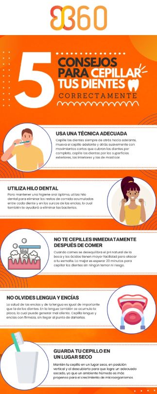 De acuerdo con el Instituto Mexicano del Seguro Social (IMSS), 2022, 9 de cada 10 mexicanos presenta caries o alguna enfermedad de las encías, por ello es que, B360 recomienda estos hábitos tan sencillos, pero efectivos, como utilizar la técnica de cepillado adecuada, ya que es la forma más sencilla, menos invasiva y dolorosa de cuidar tu salud bucodental.