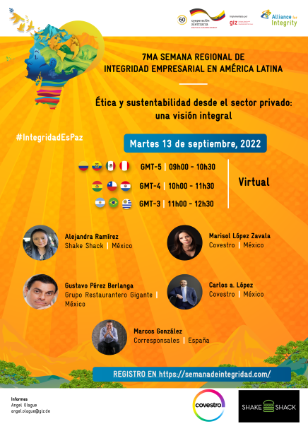 Este martes 13 de septiembre de 9 am. a 11 am. podrás unirte a la conversación registrándote en el siguiente enlace, donde podrás escuchar a diversos expertos del sector privado para conocer sus experiencias y aproximaciones en el establecimiento de políticas y códigos de ética para lograr una integridad corporativa hacia un desarrollo sostenible.