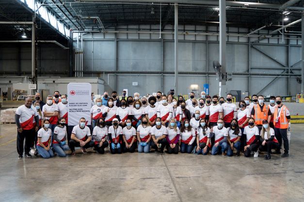 El trabajo humanitario para apoyar a Ucrania, incluidos los empleadosk que ofrecen su tiempo como voluntarios para empacar kits de respuesta y alimentos familiares de emergencia, vuelos especiales que transportan ayuda humanitaria y médica en nombre de organizaciones de ayuda mundial, y la facilitación de vuelos para que las personas viajen a Canadá.