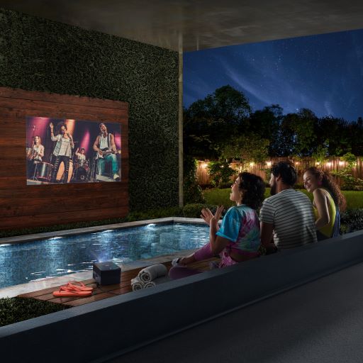En cuanto a exteriores, estos nuevos equipos revolucionan completamente la experiencia para transformarla en algo épico, trasladando las tardes de película o series a un jardín, patio, o zona exterior donde se requiera, gracias a su portabilidad, imagen de gran calidad y sonido envolvente que proporciona un rendimiento potente y emocionante que incluso rivaliza con las barras de sonido.
