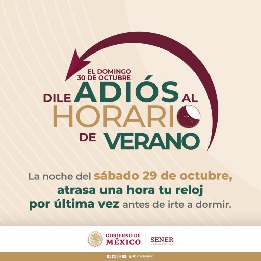 «Después de 26 años, el próximo domingo 30 de octubre dile adiós al Horario de Verano», resaltó la Secretaría de Energía (Sener) federal en un comunicado con fecha 28 de octubre de 2022.