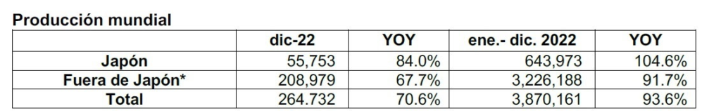 Producción fuera de Japón: cuarto año consecutivo de disminución interanual.