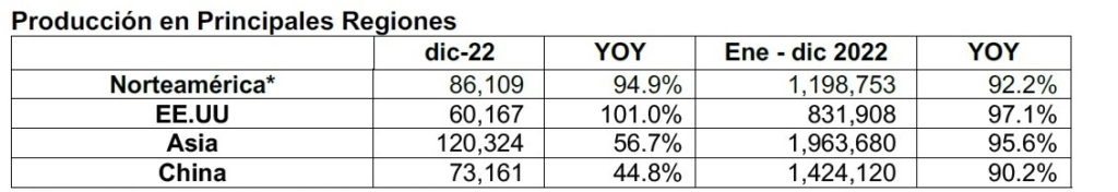 Producción mundial: segundo mes consecutivo de disminución interanual.