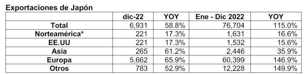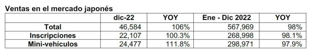 Ventas totales en Japón: cuarto año consecutivo de disminución interanual.