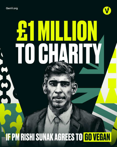 El 26 de enero, Generación Vegana (GenV) recibió una carta oficial del gobierno en respuesta a su campaña para que el Primer Ministro Rishi Sunak se hiciera vegano durante un mes en apoyo de un Reino Unido más compasivo y sostenible, y a cambio de una donación de 1 millón de libras a la organización benéfica que eligiera.