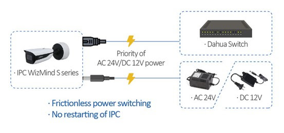 En situaciones donde el monitoreo continuo las 24 horas del día, los 7 días de la semana es esencial, o donde hay una fuente de alimentación poco confiable, la serie IPC WizMind S brinda flexibilidad operativa en el campo con respaldo de energía dual. Esto permite el cambio automático a otra fuente de alimentación (sin reiniciar el dispositivo IPC) si falla una de las fuentes de alimentación, lo que garantiza el funcionamiento continuo de la cámara.