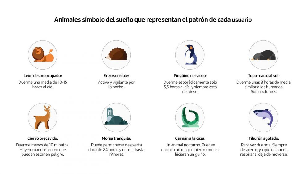 Pero el seguimiento no es suficiente por sí solo: establecer buenos hábitos es igualmente importante, y Samsung lo facilita con Sleep Coaching. Esta función utiliza un programa personalizado de un mes de duración que realiza un seguimiento de tu patrón de sueño durante siete días y luego asigna uno de los ocho animales del símbolo del sueño para representarlo. Luego, Sleep Coaching te ubica en el camino para establecer hábitos y rutinas saludables para ayudarte a lograr una buena noche de sueño de manera más consistente. Además, realiza un seguimiento de tus actividades diarias y luego brinda consejos y orientación para administrarlas mejor, desde el ejercicio y la nutrición, hasta atención plena y control de la salud.