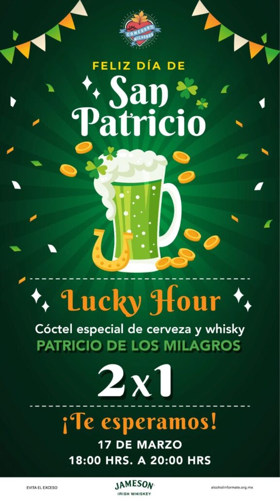 Los tréboles, los sombreros y el color verde son actualmente símbolos del Día de San Patricio. En la Ciudad de México el mejor lugar para festejarlo es el Comedor de los Milagros, un sitio que ofrecerá a sus comensales algo que no puede faltar en esta fecha: cerveza.