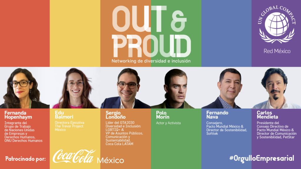 Con la participación de Fernanda Hopenhaym, Integrante del Grupo de Trabajo de Naciones Unidas De Empresas y Derechos Humanos en ONU Derechos Humanos; Edu Balmori, Directora Ejecutiva de The Trevor Project México; Sergio Londoño, Líder del GTA2030 | Diversidad e Inclusión: LGBTIQ+, y VP de Asuntos Públicos, Comunicación y Sustentabilidad de Coca Cola Latinoamérica; Fernando Nava, Consejero de Pacto Mundial México y Director de Sostenibilidad de Softtek; Polo Morín, Actor y Activista; y Carlos Mendieta, Presidente del Consejo Directivo de Pacto Mundial México y Director de Asuntos Públicos, Comunicación y Sostenibilidad de PetStar; se incentivó a un intercambio de alto nivel para propiciar conexiones por la diversidad.