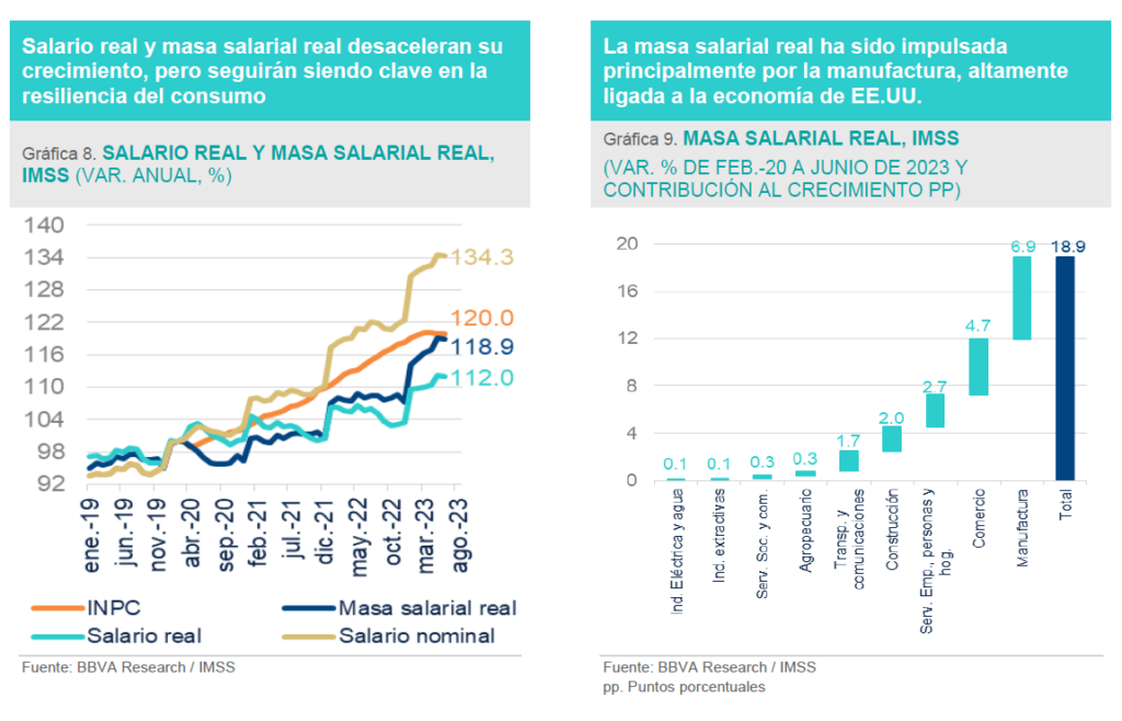 En el caso específico del salario real promedio sigue mostrando fortaleza y sigue 12% por arriba respecto a su nivel previo a la pandemia y la masa salarial 18.9%, en gran parte impulsados por la desaceleración de la inflación.