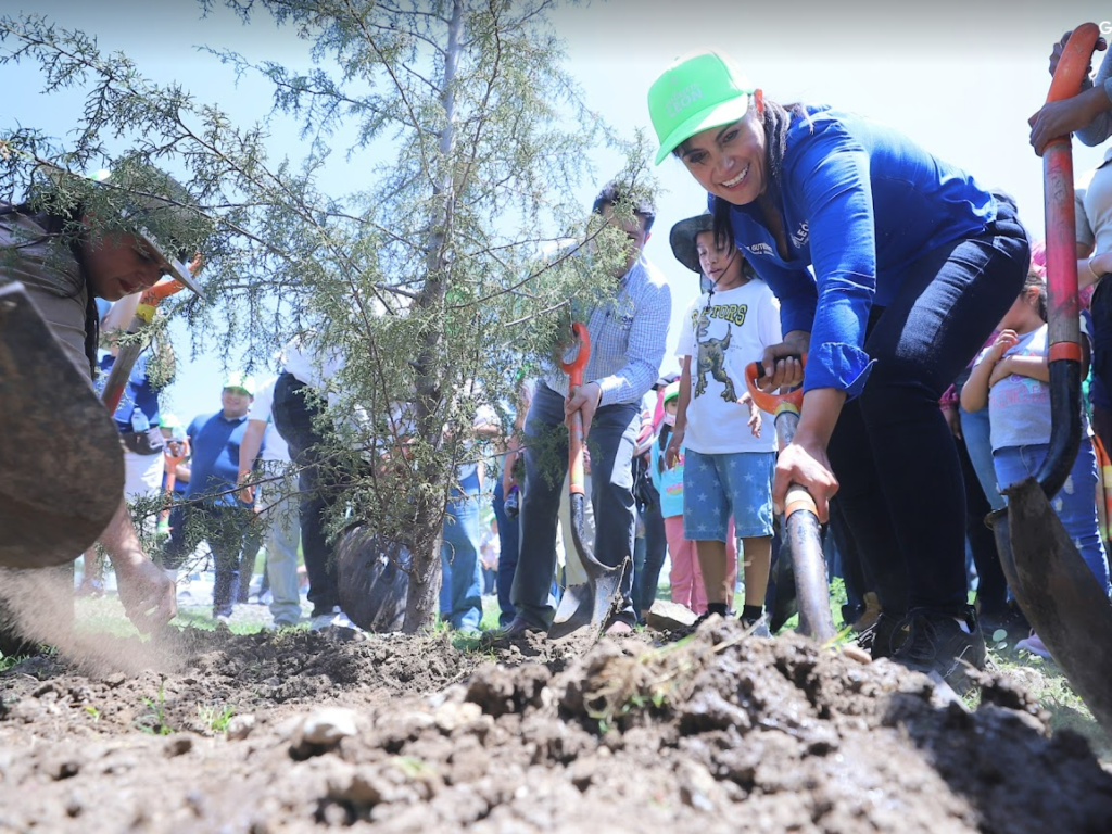 Ciudadanos, instituciones educativas y funcionarios públicos municipales respondieron al llamado de la alcaldesa Ale Gutiérrez para plantar 1 mil 427 árboles este domingo, como parte de la meta para llegar a 36 mil ejemplares sembrados este año.