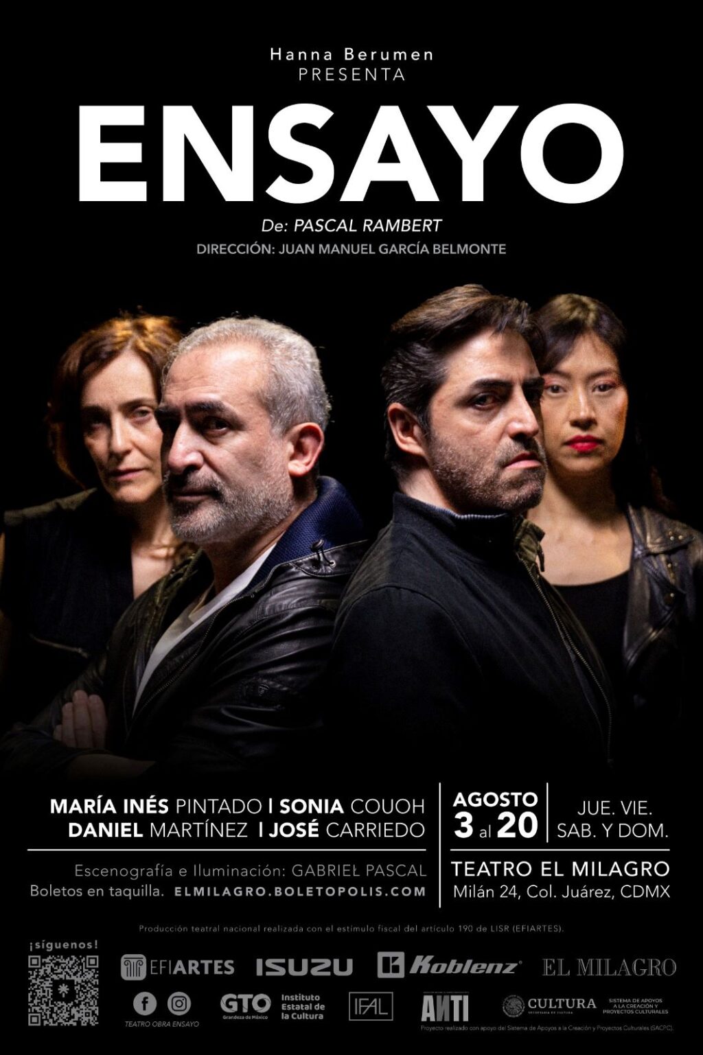 Para su estreno por primera vez en México, “Ensayo” es protagonizada por Sonia Couoh, José Carriedo, María Inés Pintado y Daniel Martínez.