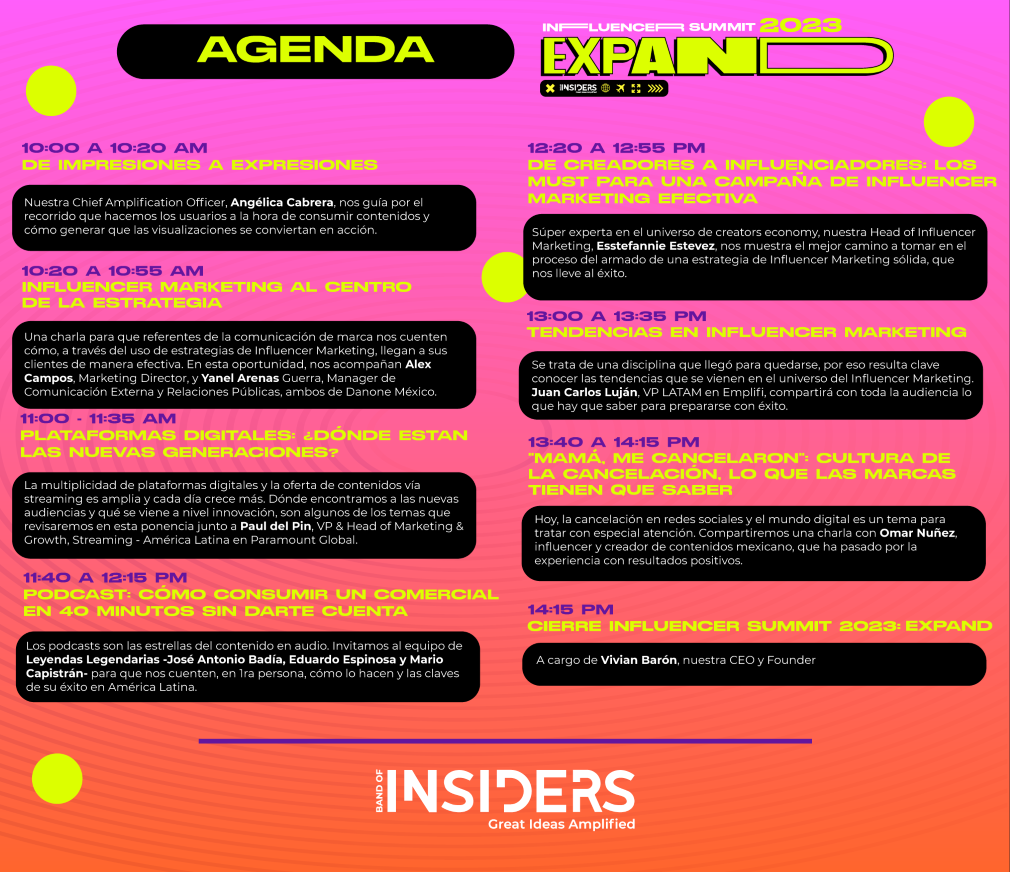 Registrate y revisa la agenda completa de Influencer Summit 2023: Expand en http://influencersummit.la/