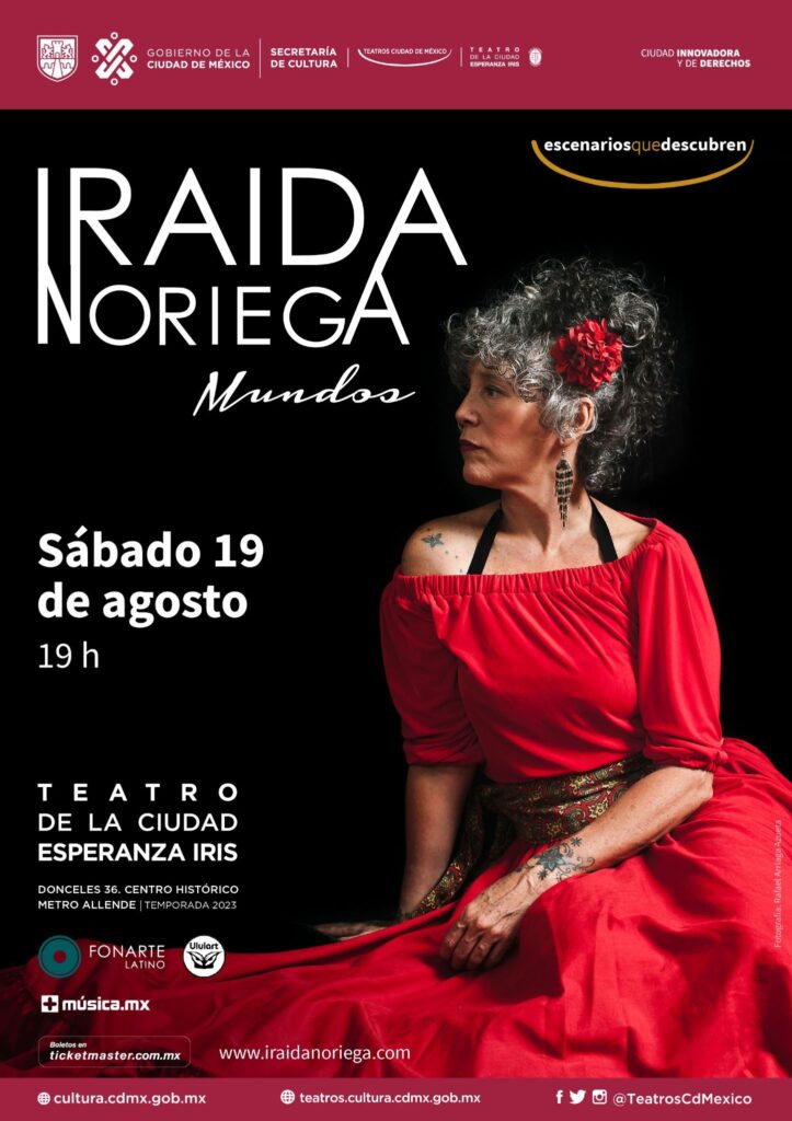 MUNDOS: Iraida Noriega se presentará el sábado 19 de agosto a las 19:00 horas en el Teatro de la Ciudad Esperanza Iris (Donceles 36, Centro Histórico, Metro Allende).