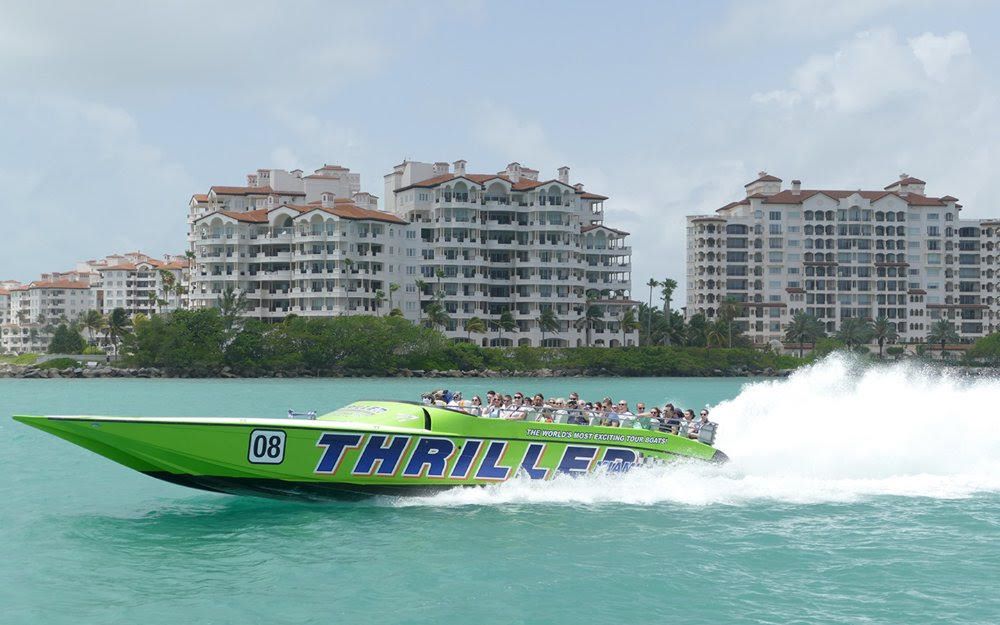 Las actividades por mar mantienen el mismo ritmo cardiaco; tal es el caso de Thriller Miami, en donde los visitantes podrán tomar un tour de 45 minutos en una de las lanchas más rápidas de la zona y visitar lugares como PortMiami, la Isla de las Estrellas, Fisher Island y South Beach a una velocidad de hasta 64 kilómetros por hora navegando por la Bahía de Bisvayne y el mar abierto.