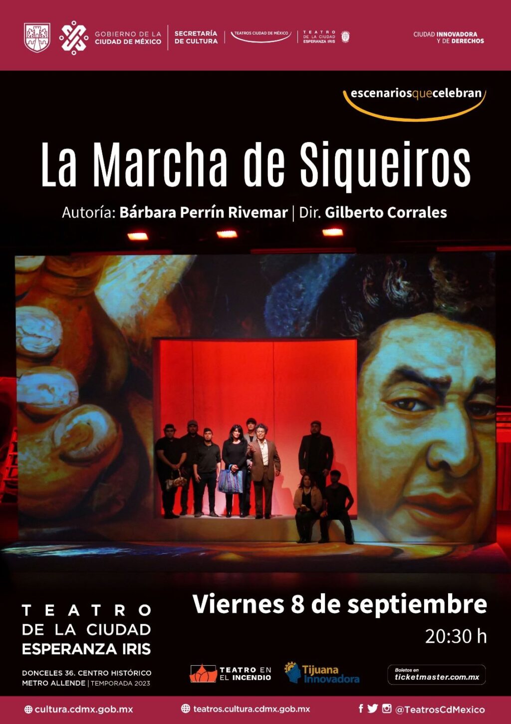 La Marcha de Siqueiros se llevará a cabo el viernes 8 de septiembre a las 20:30 horas en el Teatro de la Ciudad Esperanza Iris (Donceles 36, Centro Histórico, cerca del Metro Allende).