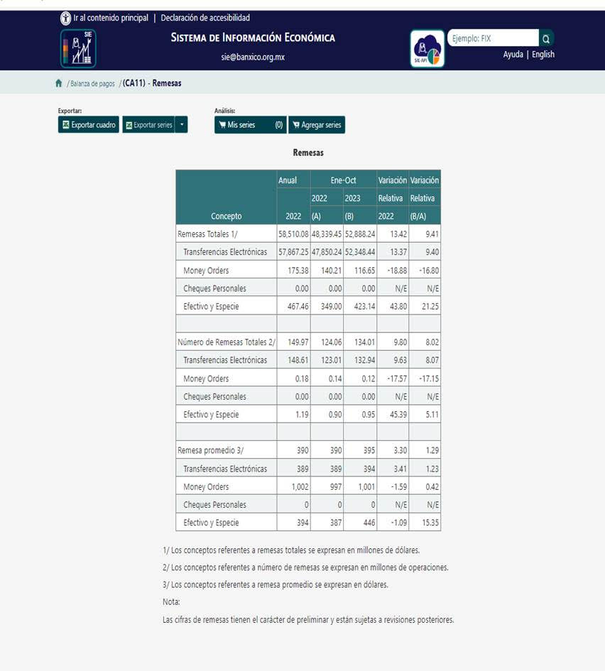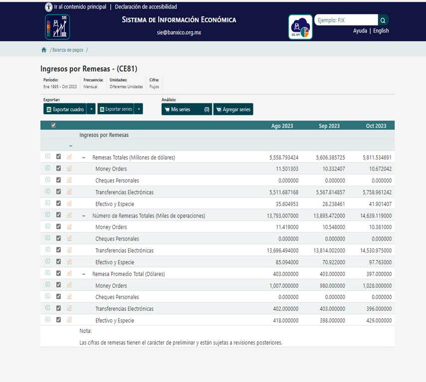 Remesas con el exterior, octubre 2023 (1 diciembre 2023)