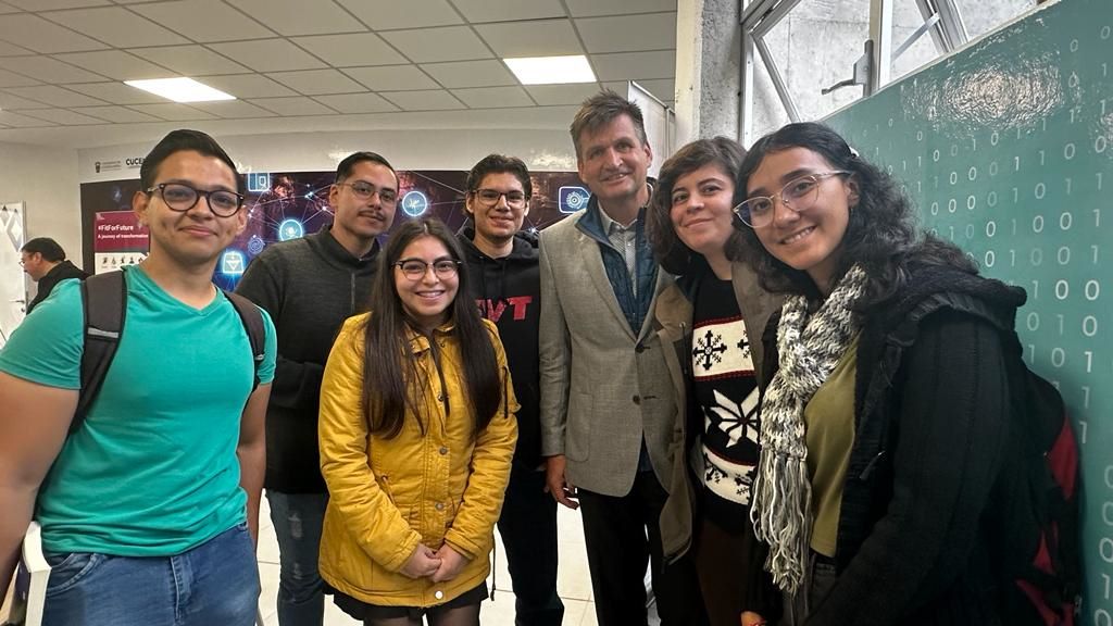 Alexander Firsching, presidente de Bosch México con estudiantes de CUCE