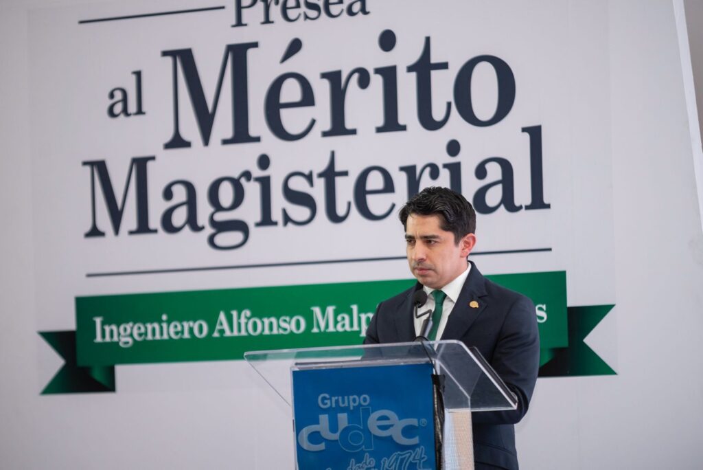 En la ceremonia de entrega de la presea al Mérito Magisterial, que tuvo lugar en las instalaciones de grupo CUDEC en Tlalnepantla, Estado de México, se reconoció la labor y trayectoria de profesores con más de 20 años de vida académica. A ellos, Malpica Olvera les recordó que la docencia es un actor de amor, que exige una entrega total.