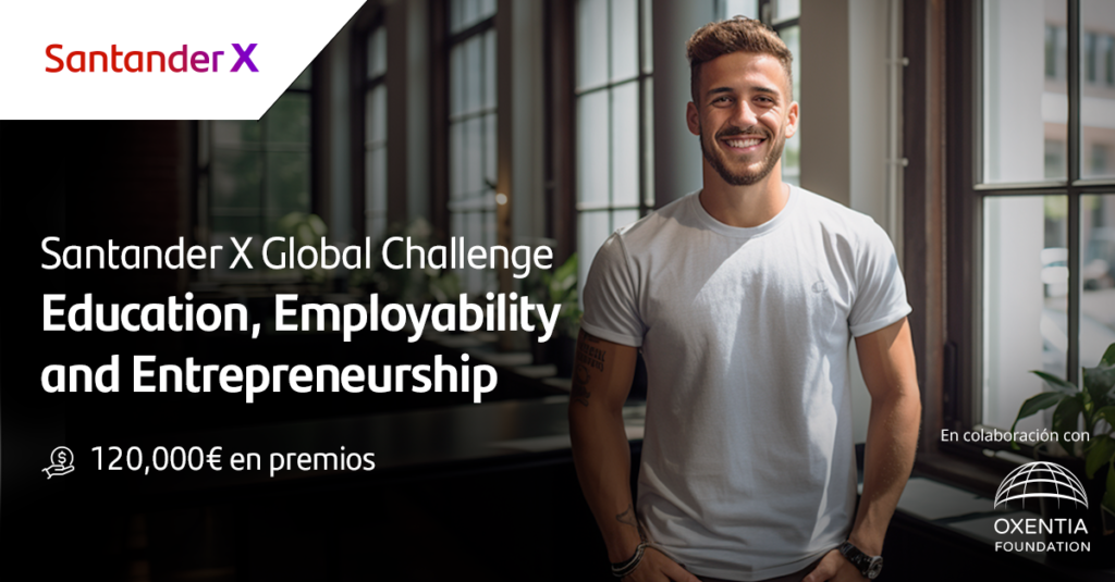 Banco Santander lanza, junto a Oxentia Foundation, Santander X Global Challenge | Education, Employability, and Entrepreneurship, un reto global dirigido a startups y scaleups de 11 países – México, Alemania, Argentina, Brasil, Chile, EEUU, España, Portugal, Polonia, Reino Unido y Uruguay- que aporten soluciones innovadoras en las áreas de educación, empleabilidad y emprendimiento.