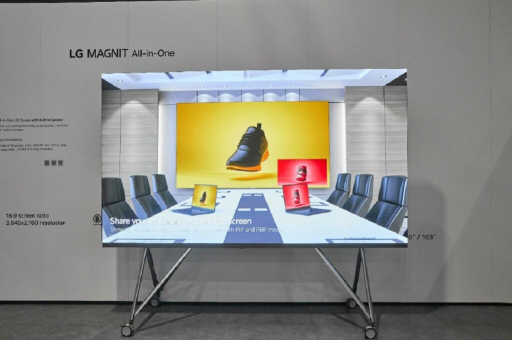 Con un tamaño estándar de 136 pulgadas, y resolución disponible en 4K o 2K, el modelo LG MAGNIT All-in-One (modelo LAAA007 o LAAA015) es ideal para su uso en salas de juntas y salas ejecutivas. La pantalla ofrece una experiencia de visualización la mejor calidad gracias a la excelente tecnología LG Micro LED y su comodidad para el usuario derivado a su pantalla de relación de aspecto 16:9 estandarizada con un altavoz y controlador integrados, mientras que los módulos de pantalla LED (LDM) pre montados de LG, ayudan a agilizar el proceso de instalación. La LAAA007, es la primera gama de LED todo en uno de LG con resolución 4K, que ofrece imágenes ultra nítidas y un texto cristalino para transmitir contenidos de forma clara y eficaz.