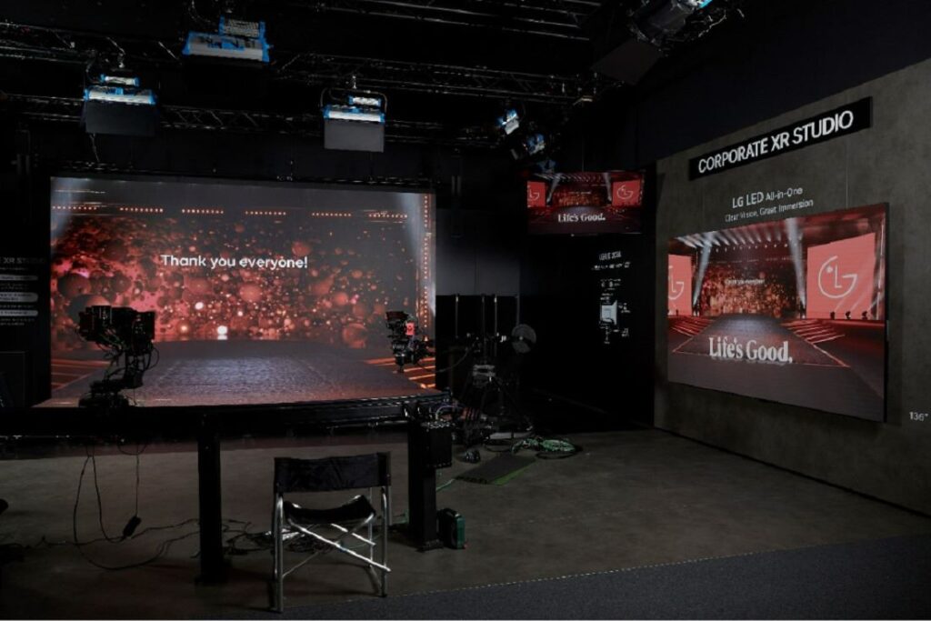 Cada vez son más las empresas que establecen sus propios estudios de producción virtual, lo que les permite producir internamente una amplia variedad de contenidos, como producciones internas de la empresa, anuncios publicitarios y videos de presentación de los directores. LG ha respondido a esta tendencia con la introducción de sus soluciones Micro LED para producción virtual, representadas en ISE 2024 por el modelo LBAG015, que proporcionan una integración perfecta con cámaras, iluminación y otros equipos de filmación, de este modo ofrecen un proceso de grabación de video fluido gracias a su alta frecuencia de actualización (7.680 Hz) y alta frecuencia de imagen (23.98 a 120 Hz).