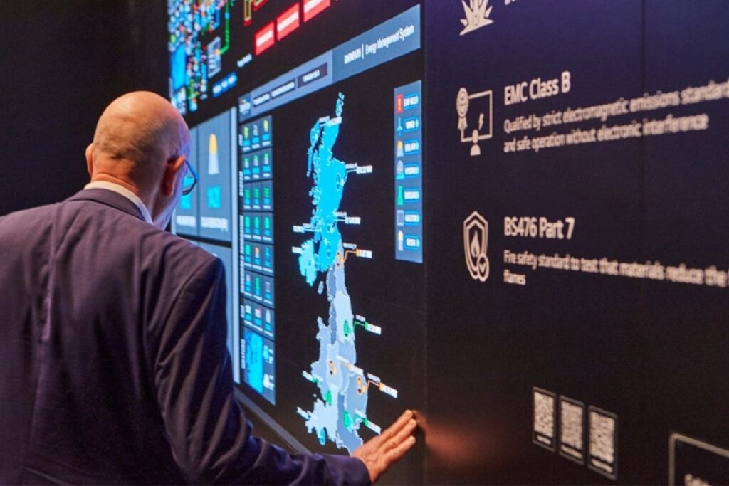La LG MAGNIT con fuente de alimentación desmontable (modelo LSAQ009) es una impresionante pantalla de 163 pulgadas diseñada principalmente para salas de crisis (situation room) y salas de control en oficinas gubernamentales y sedes corporativas. También es una excelente opción para pequeñas y medianas empresas que dan prioridad a la fiabilidad.