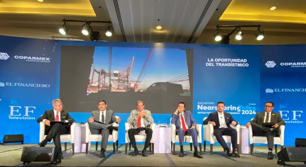 Los participantes del panel llamado «La oportunidad del Transísmico” en el Nearshoring Talks 2024 organizado por Coparmex CDMX en conjunto con El Financiero.