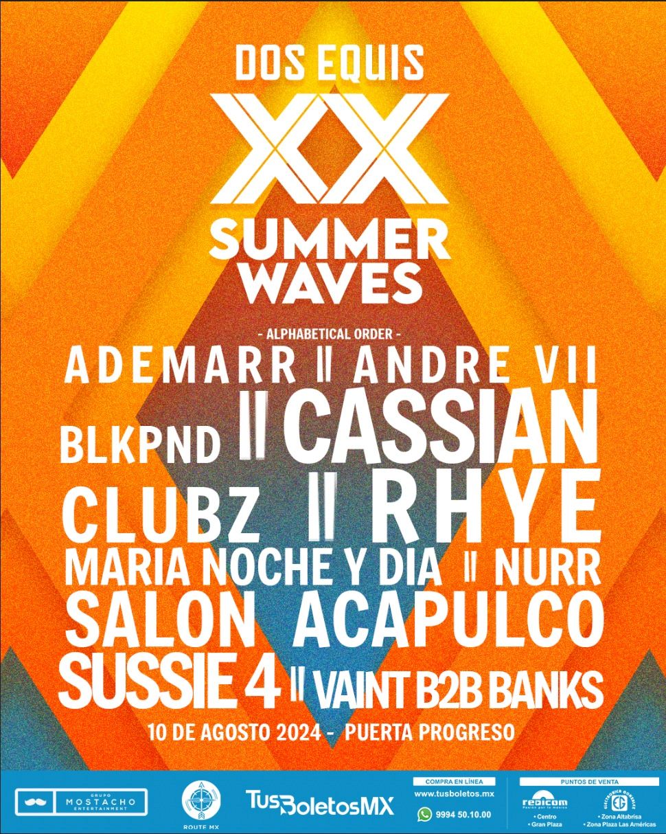 Por supuesto, apoyando con orgullo el talento nacional, podrás presenciar los increíbles sets al ritmo de las olas con Ademarr, Andre VII, BLKPND, María Noche y Día, NURR, Sussie 4 y VAINT B2B BANKS.