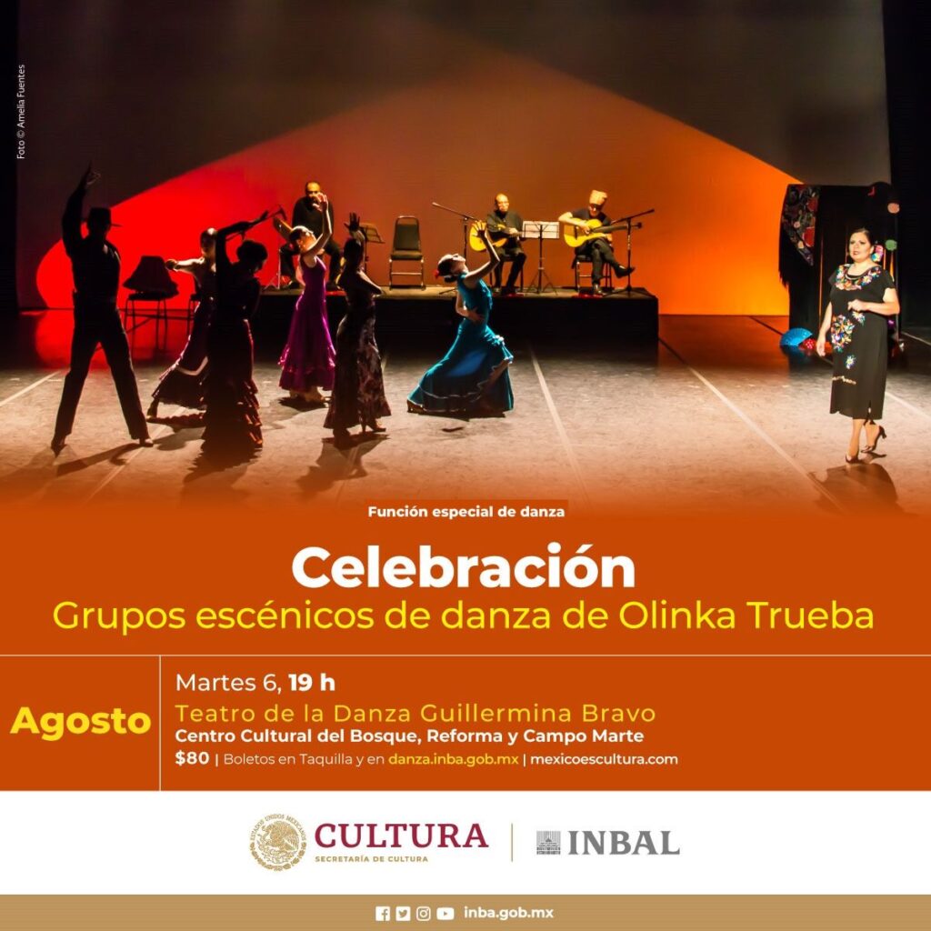 El público está invitado a disfrutar del espectáculo titulado Celebración, enhomenaje a la maestra Olinka Trueba, así como a su trayectoria e influencia dentro de la práctica y la docencia de la danza española en México.