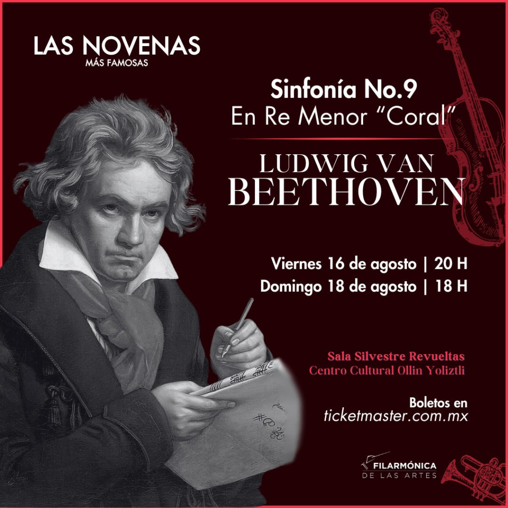 La Filarmónica de las Artes rinde homenaje al bicentenario de una de las obras más emblemáticas de la música clásica: la Novena Sinfonía de Ludwig van Beethoven. Acompañando esta celebración, se presentarán tres conciertos inolvidables que destacarán la majestuosidad de las Novenas Sinfonías de Beethoven, Gustav Mahler y Antonin Dvořák. Los conciertos se llevarán a cabo los días 15, 16, 17 y 18 de agosto en la Sala Silvestre Revueltas del Centro Cultural Ollin Yoliztli.
