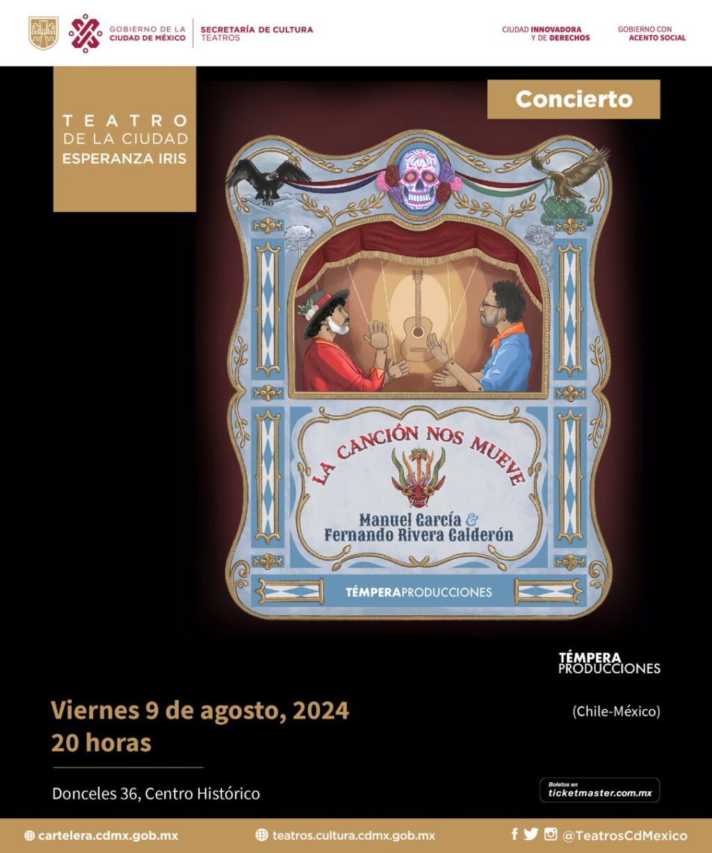Manuel García y Fernando Rivera Calderón. La canción nos mueve se presentará el próximo viernes 9 de agosto a las20:00 horasen el Teatro de la Ciudad Esperanza Iris (Donceles 36, Centro Histórico, Metro Allende).