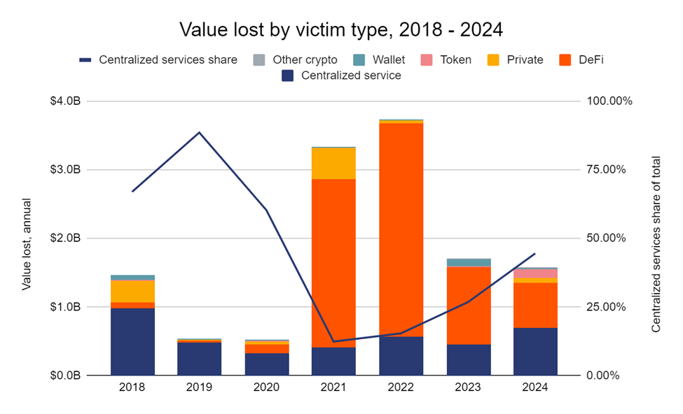 Crypto thieves seem to be returning to their roots and targeting centralized exchanges again after four years focused on their decentralized counterparts, which typically do not trade bitcoin.