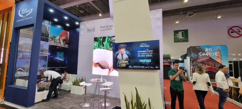 Brenda Gómez, directora de ventas de Grupos, estuvo presente en el stand de Mundo Imperial promocionando que los hoteles de Pierre y Palacio Mundo Imperial ya están operando al 100% de su capacidad, mientras que el hotel Princess Mundo Imperial actualmente está operando con la Torre Perla y para finales de 2024 será la gran reapertura.