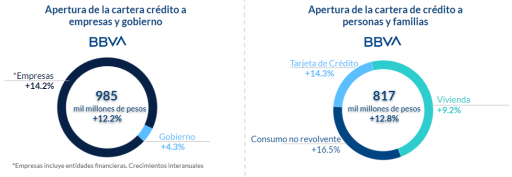El banco destaca que la cartera de pymes registra un crecimiento interanual del 20.2%, alcanzando 132,000 mdp. Por su parte, el crédito empresarial suma 660,000 mdp, con un aumento de 13.1%. El segmento de gobierno aporta 193,000 mdp, con un 4.3% de incremento.
