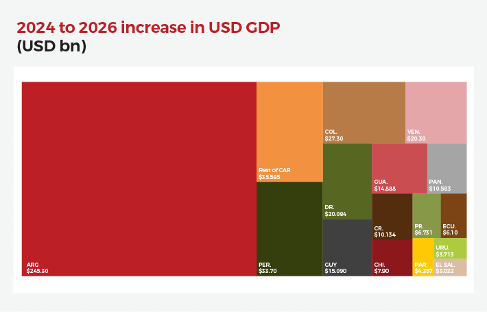 El gobierno de Santiago Peña ha tenido más éxito atrayendo inversión extranjera directa a través de asociaciones público-privadas y controlando el gasto. La confianza de los inversores en su gobierno ha aumentado, allanando el camino para proyectos multimillonarios en producción de pulpa e hidrógeno verde. Las exportaciones de soja, que siguen siendo sólidas, ayudarán a Paraguay a lograr un crecimiento anual del 5% durante los próximos dos años (en dólares estadounidenses).