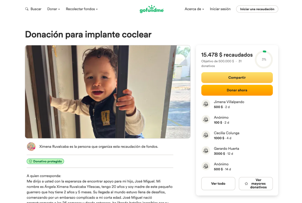 Sin embargo, la cirugía es costosa y se sale de las posibilidades de su familia, por lo que buscan recaudar 500,000 pesosEl 25 de febrero es el “Día Internacional del Implante Coclear”, que conmemora el aniversario del primer implante de este tipo en el mundo realizado en 1957, así que puedes tomar esta fecha significativa para animarte a hacer una donación o compartir con tus allegados la historia de José Miguel dando clic en el siguiente enlace: https://gofund.me/25a2727d