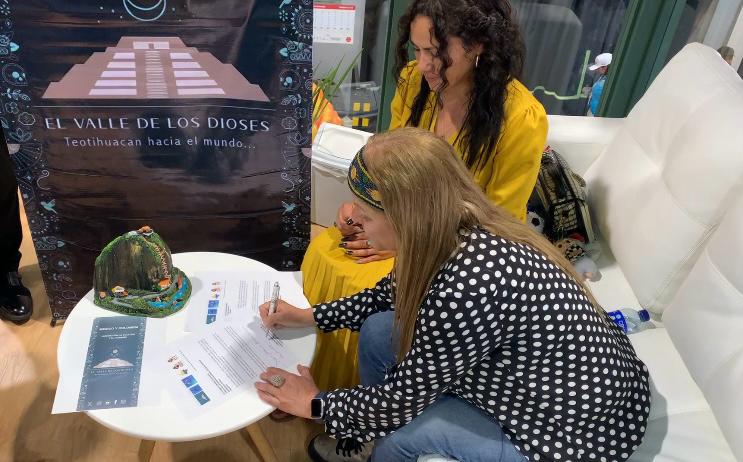 En la ceremonia de hermanamiento del segundo y tercer monolito más grandes del mundo, en el marco de la feria turística de ANATO, Colombia, participaron también la Directora de Turismo del proyecto del Valle de los Dioses, Ruby López, el artista musical de sonoridad prehispánica, Carlos Bastón, y el Director de Comunicación y Prensa del mega proyecto de “Teotihuacan hacia el mundo”, Víctor Hugo Rubio. +52 1 55 2562 0420
