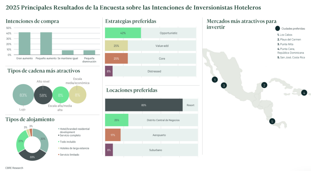 CBRE México presenta su encuesta sobre las Intenciones de de los inversionistas hoteleros de MéxicoCentroamérica y el Caribe, destacando información del sector.