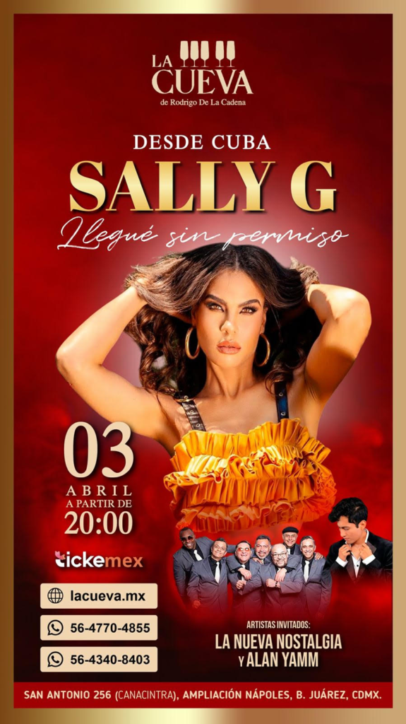 Sally G presenta su concierto «Llegué sin permiso» el 3 de abril a las 20:00 horas en La Cueva de Rodrigo de la Cadena, con boletos disponibles en https://tickemex.com/