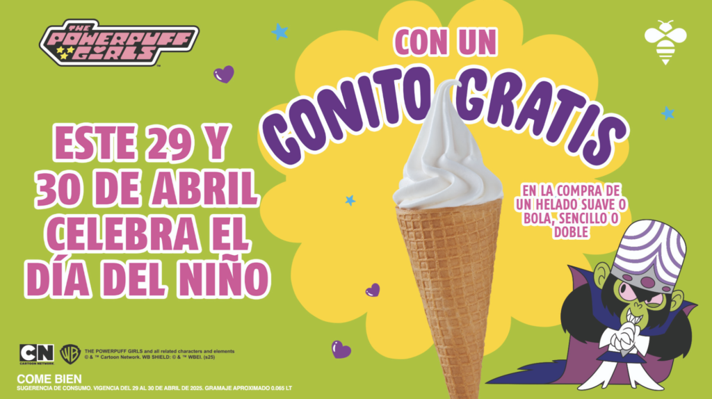 Pero la aventura no termina ahí. Para elevar la experiencia, Nutrisa presenta el Peque Pack de Las Chicas Superpoderosas , lleno de sabor, flores y muchos colores. Este paquete tiene un costo de $125 pesos y contiene un helado, un libro para colorear y crayolas.