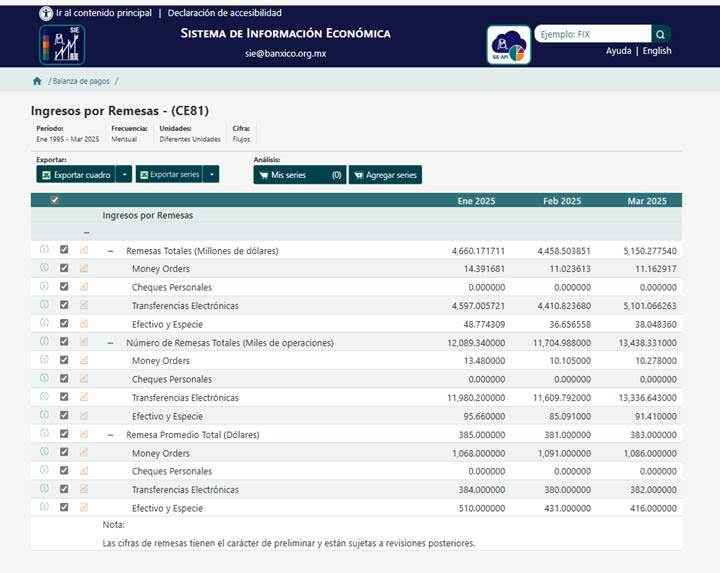 Remesas con el exterior, marzo 2025 (2 mayo 2025)