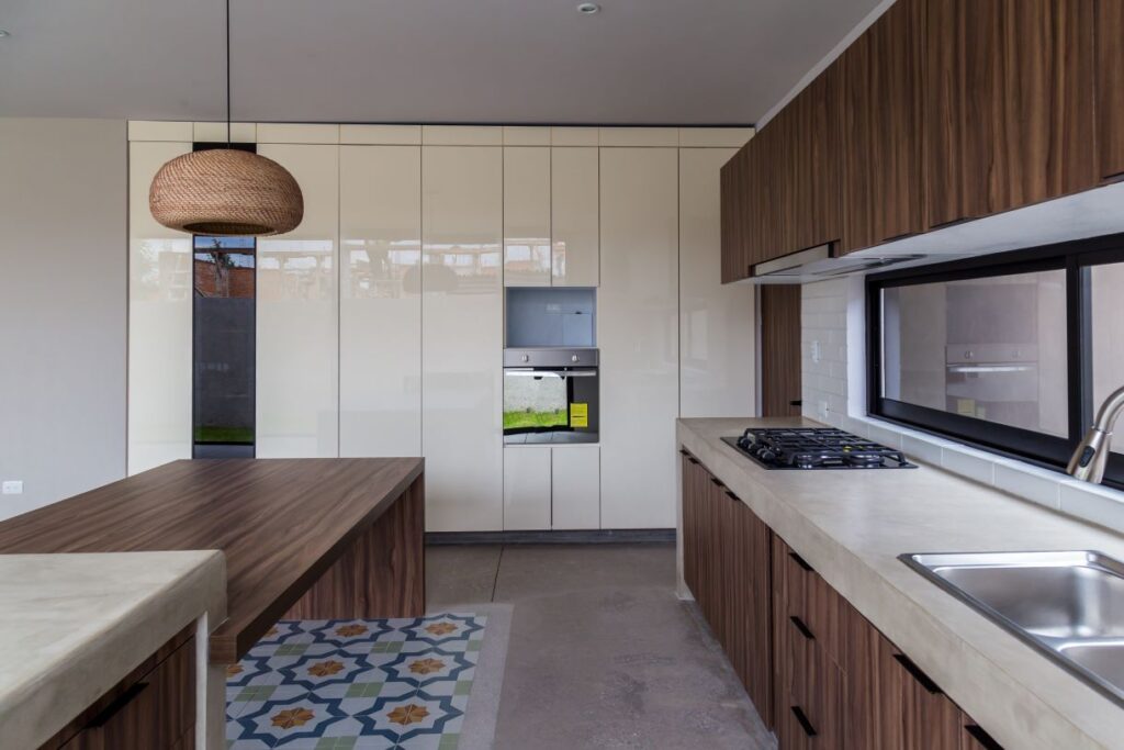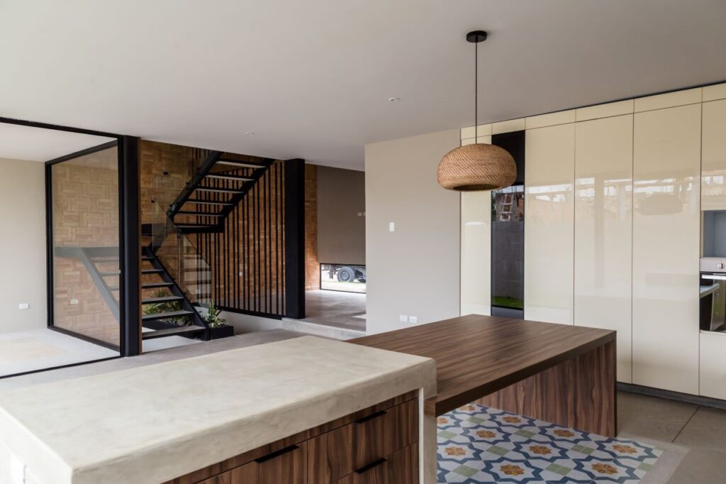La elección de materiales honestos, accesibles y duraderos permitió mantener costos contenidos, al tiempo que se reforzó la identidad estética de la casa.