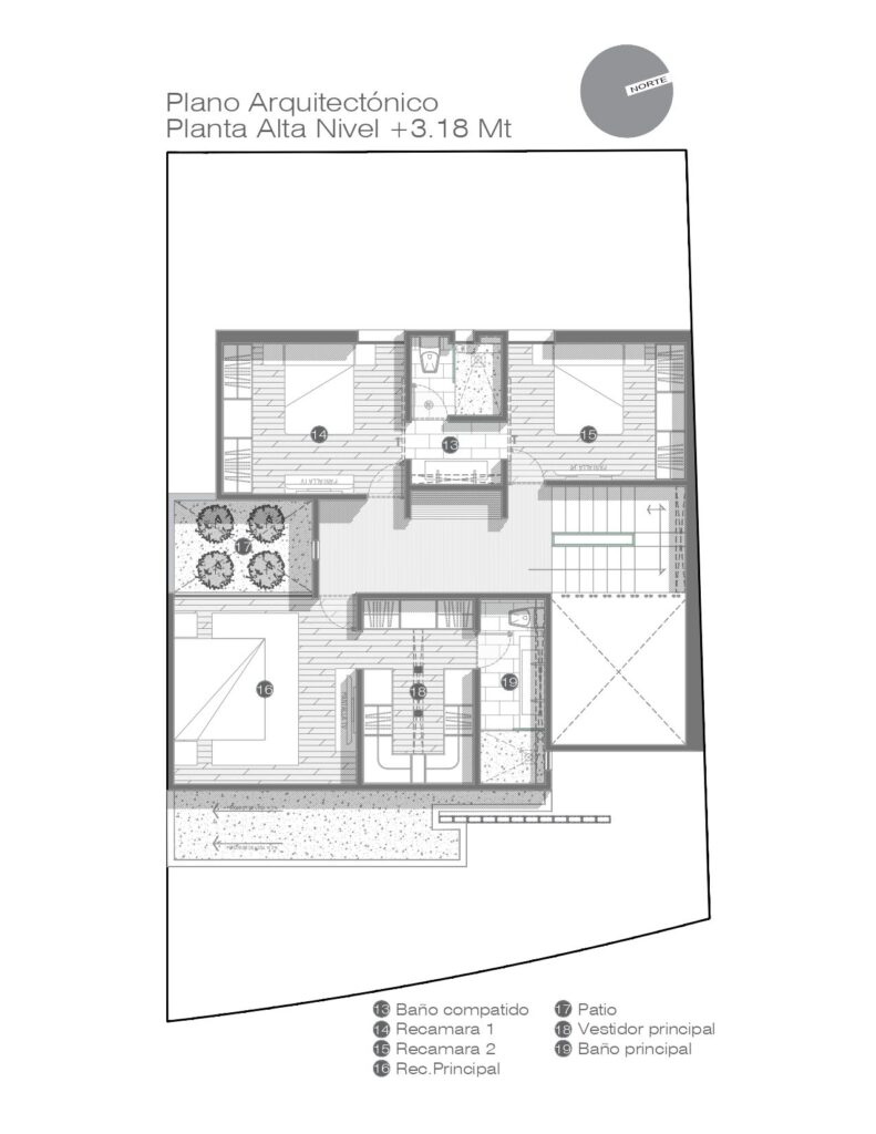 En la planta alta se distribuyen tres habitaciones de diseño funcional.