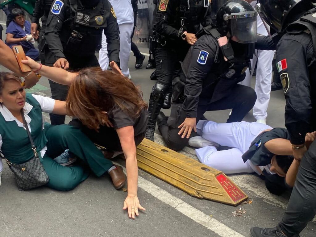 Trabajadoras de Salud, pertenecientes al IMSS Bienestar en la Ciudad de México (CDMX), fueron desalojadas violentamente esta tarde por policías que sin razón alguna a golpes y arrastrándolas, las obligaron a retirarse de las inmediaciones del edificio, ubicado en Insurgente Sur 1940, donde se encuentra la sede de esa institución.